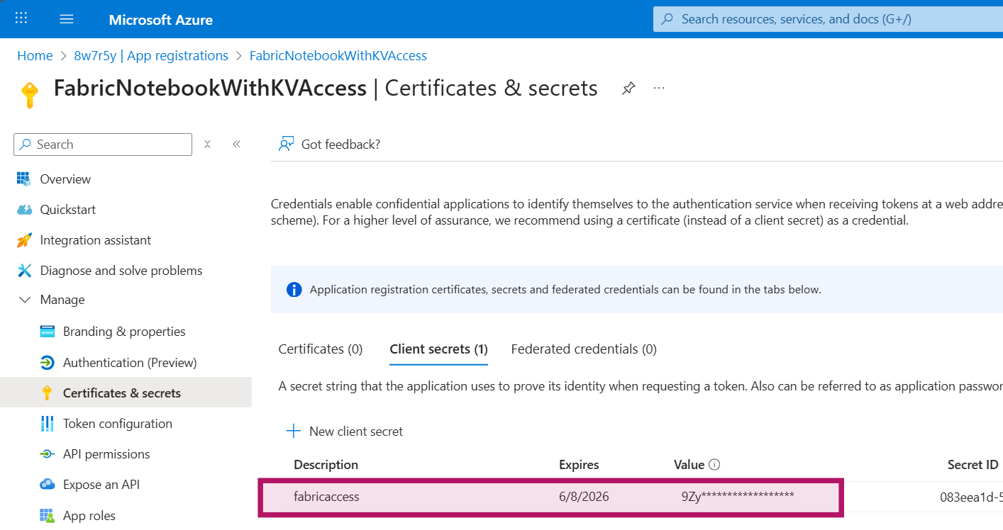 pswrd = notebookutils.credentials.getSecret(keyVaultURL, secretName)